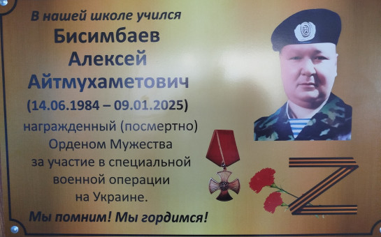 14 октября 2025 года в МКОУ Петропавловской ООШ прошло открытие мемориальной доски в память о погибшем на Украине выпускнике школы, Бисимбаеву Алексею Айтмухаметовичу.